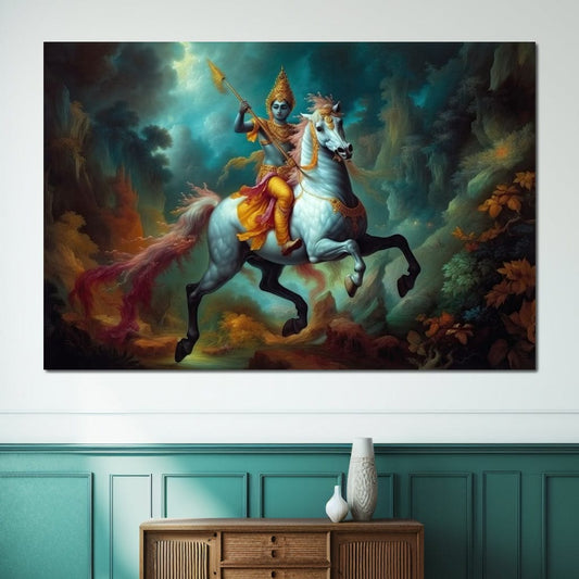 • Krishna on a Horse HinduOmDesigns Black Floating Frame / 30" x 20" Posters, Prints, & Visual Artwork hindu canvas wall art M2MR4FZC