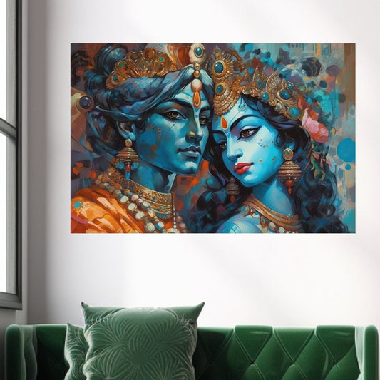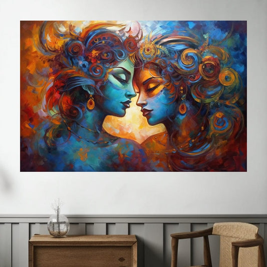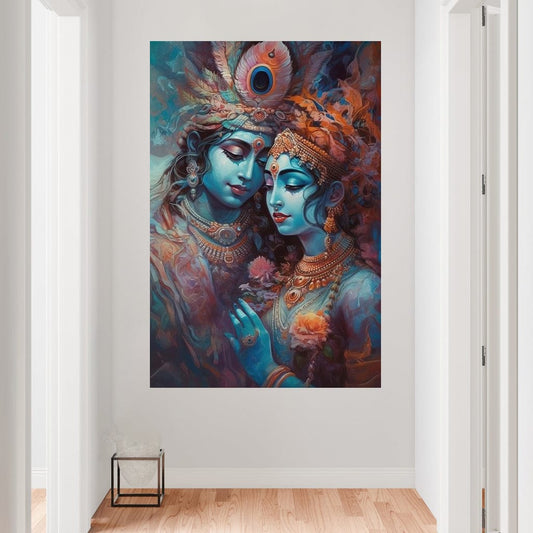 • Krishna Radha Reflection HinduOmDesigns Black Floating Frame / 20" x 30" Posters, Prints, & Visual Artwork hindu canvas wall art S2JDZKP3